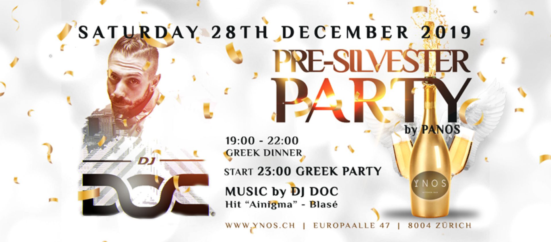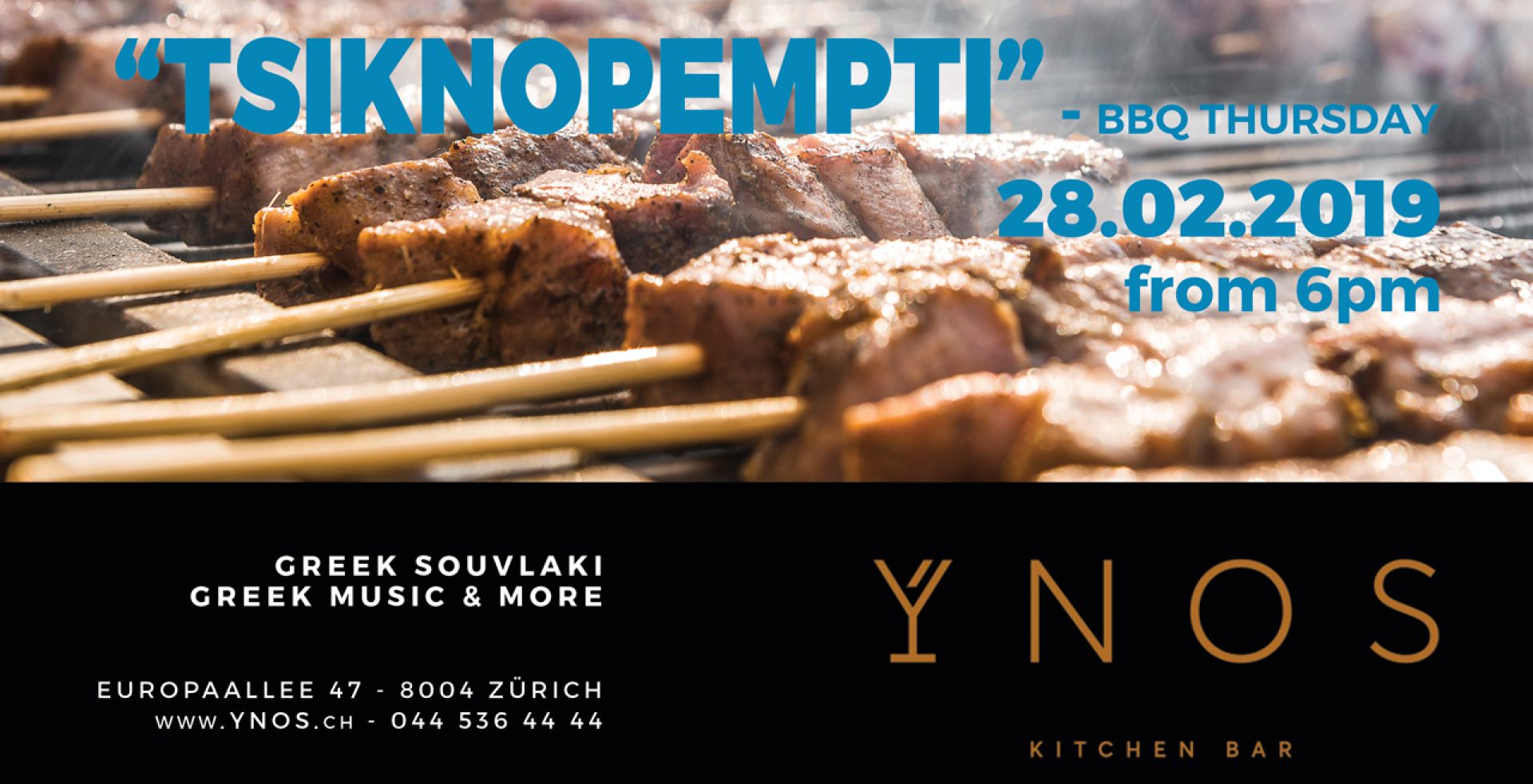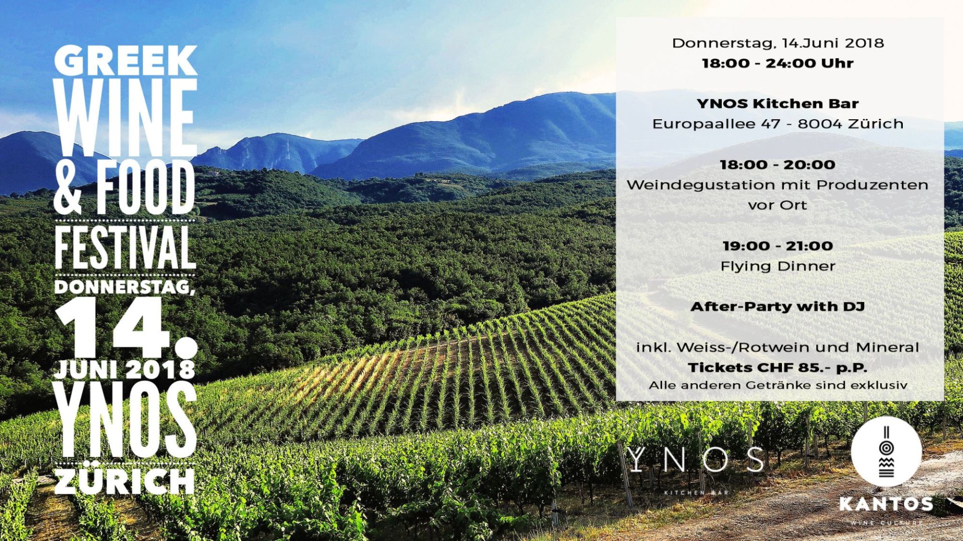 (inkl. Weine und Mineral, Flying Dinner - exkl andere Getränke)Ticket Online hier bestellen oder im YNOS gegen Barzahlung